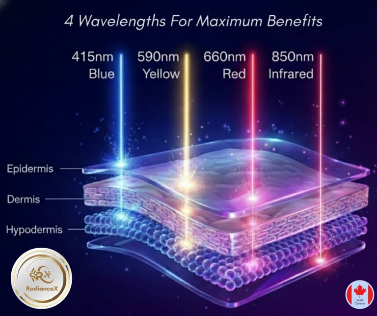 The RadianceX LED Therapy Masks are not just RED-Light therapy masks. Our masks feature the benefits of 4 different color light therapies.
